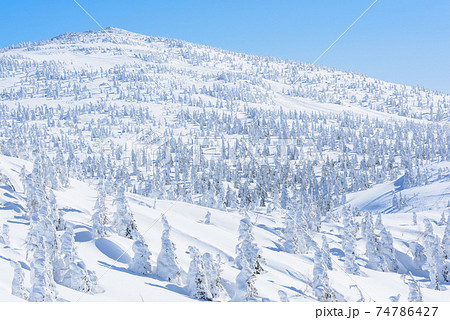 幻想的な冬晴れの森吉山樹氷群 秋田県