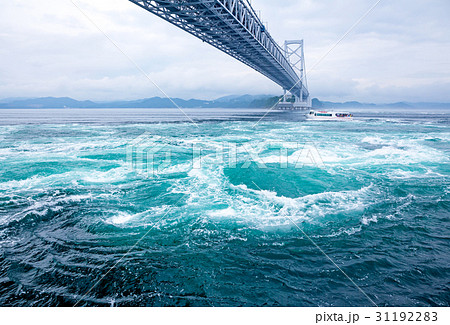 観潮船から見たうず潮 鳴門海峡の渦潮 鳴門のうず潮 イメージ素材