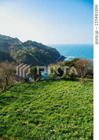 淡路島・灘黒岩水仙郷、満開の水仙の大群生/スイセンの日本三大群生地/日本遺産/瀬戸内海国立公園