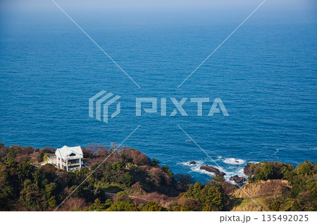 兵庫県淡路島 灘黒岩水仙郷から見た南淡路水仙ラインと沼島
