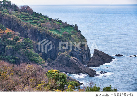 兵庫県淡路島 灘黒岩水仙郷から見た南淡路水仙ラインと沼島