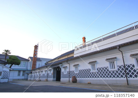 西条の造り酒屋 白壁と赤レンガ煙突 東広島市 広島県