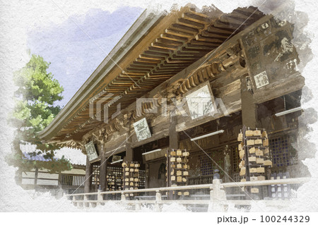 水彩画風 天橋立 智恩寺 文殊堂 京都府宮津市