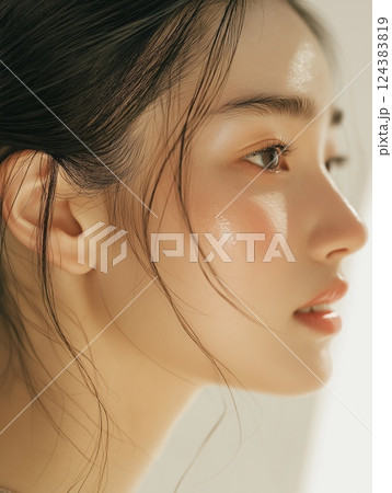 つややかな肌の日本人女性の横顔のクローズアップ