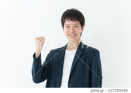 若い男性 ビジネス 全身 ガッツポーズ