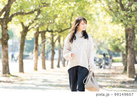 若い女性のファッションスナップ