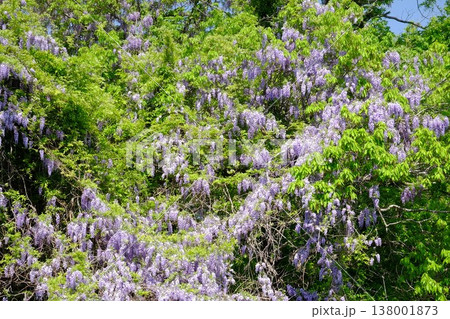 {神奈川県}雑木を覆う野フジの花
