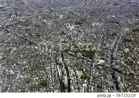 西武池袋線の桜台駅上空から江古田駅方向を空撮