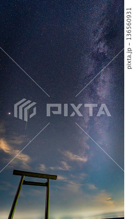 鳥居と天の川とペルセウス座流星群