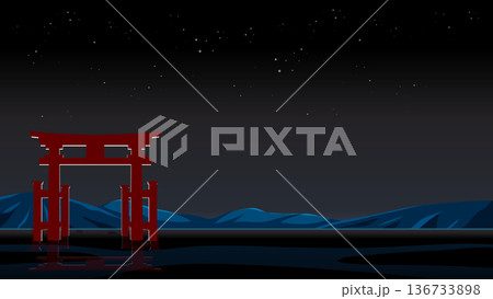 Traditional Red Japanese Torii Gate Under a Starry Night Sky