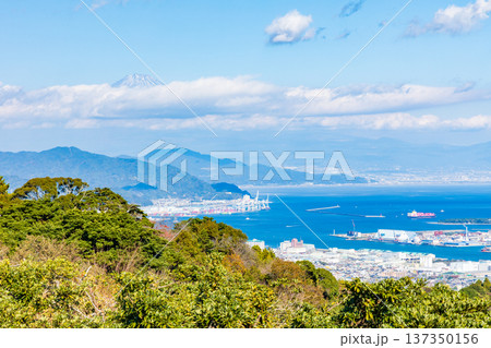 静岡市にある朝の晴れた日の日本平夢テラスの風景(静岡県)