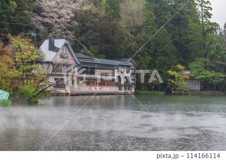 Kinrin lake with rain, mist, sightseeing spot, Yufuin, Oita