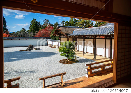 Rock garden with colofrul autumn leaf of Manshuin Monzeki temple, Kyoto