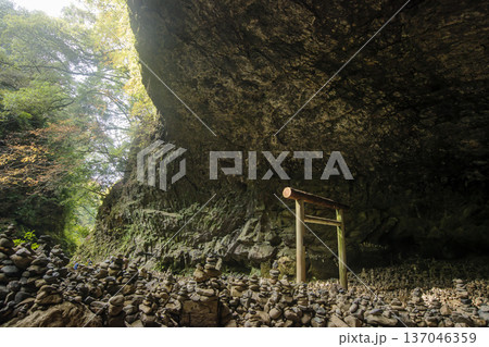 天安河原の風景 天岩戸神社 宮崎観光スポット 日本神話の舞台の大洞 窟神秘的な神社の洞窟