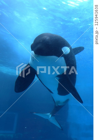 水槽で泳ぐシャチ(名古屋港水族館 愛知県 名古屋市)