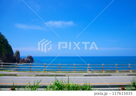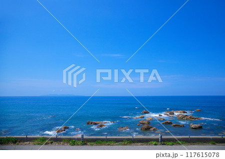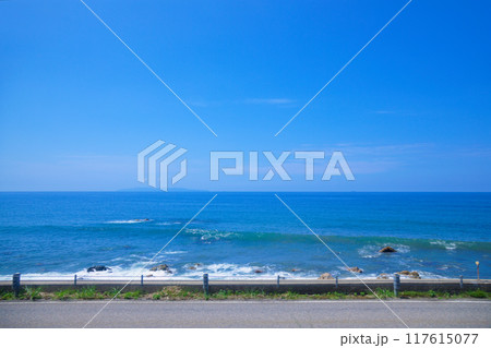 海府ふれあい広場 日本海夕日ラインこと国道345号沿いの日本海(新潟県村上市)