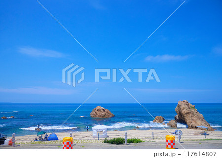 笹川海水浴場と君戻し岩 笹川流れ 村上市笹川