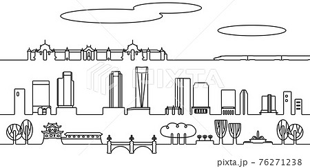 日本の東京都市景観 皇居前、ビジネス街の高層ビル群などを望む