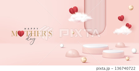 愛心氣球商品展示台,適用婦女節、母親節、情人節、紀念日、週年、生日、婚禮橫幅廣告向量素材