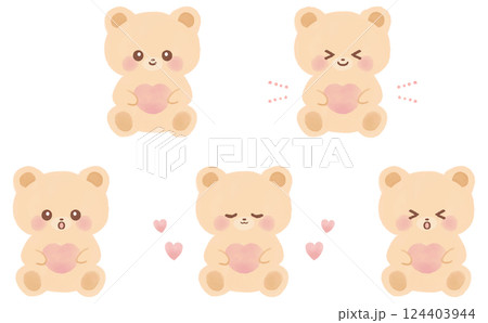 ハートを持つかわいいくまの水彩イラストセット