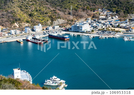 【瀬戸内海国立公園】冬晴れのみなとの見える丘公園から見た日生駅前港2 岡山県備前市