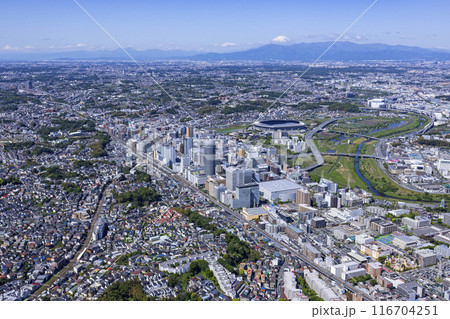 新横浜駅と富士山・空撮