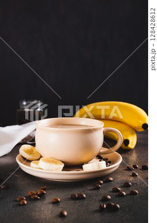 Alternative cold banana coffee in a cup on the table vertical view
