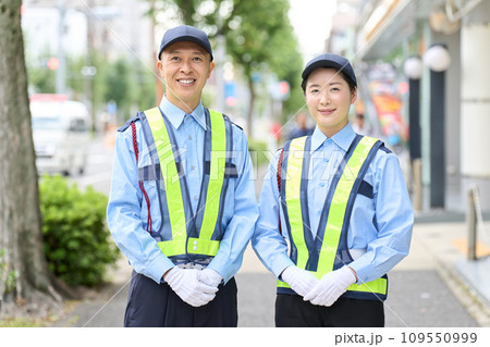 警備員の仕事をするアジア人の男女