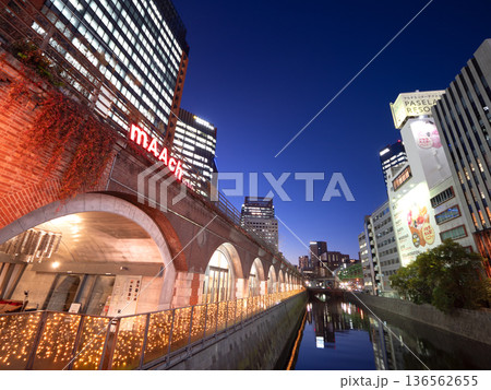 東京都、旧万世橋駅跡の夜景