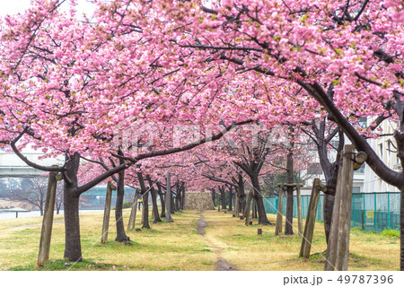 【季節のイメージ素材】東京旧中川ふれあい橋周辺の河津桜(平井)