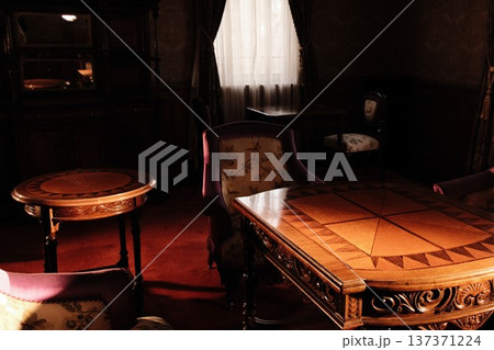歴史的建造物の内装 落ち着いた光が差し込むレトロな窓辺のテクスチャ