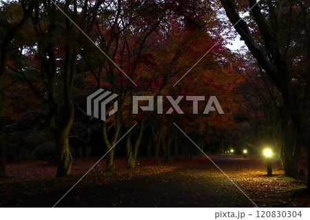 紅葉彩る日暮れの函館香雪園にて(北海道函館市)