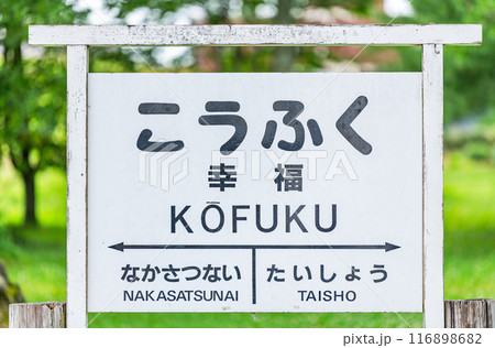 北海道帯広市 旧国鉄広尾線 幸福駅の駅名標
