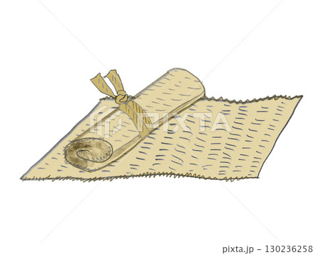 藁で編まれたロープがグルグルと噛まれて置かれているイラスト