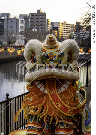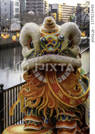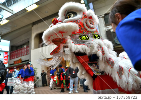 獅子舞 南京町の春節祭 獅子舞彩青「祝儀とリ」
