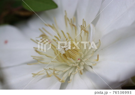 気品のある白い花、クレマチス・ダッチェス・オブ・エディンバラのアップ