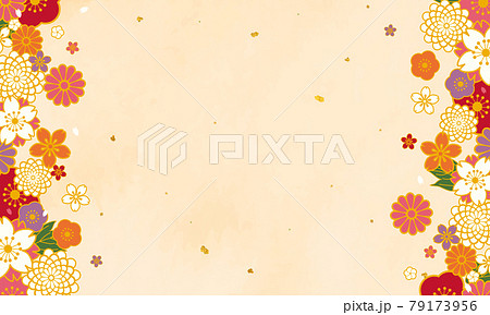 和紙に金箔が入った和柄の花の背景のベクターイラストフレーム(背景、正月、春節、旧正月)