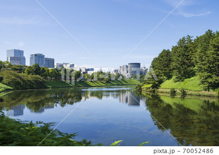 時代を超えた都市風景 江戸城跡・桜田濠から望む桜田門と丸の内オフィス街