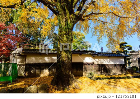 秋晴れ光芒を背景に映える日本庭園イチョウの木 紅葉風景「旧細川刑部邸」竹あかり 限定公開 熊本市