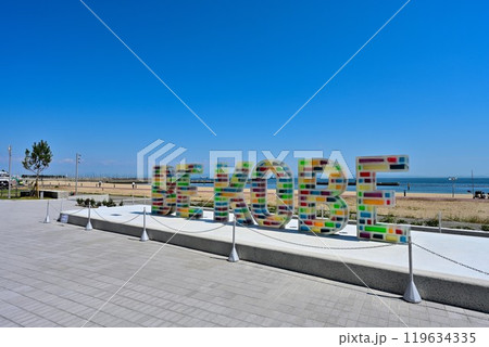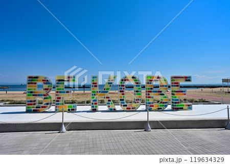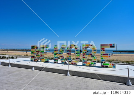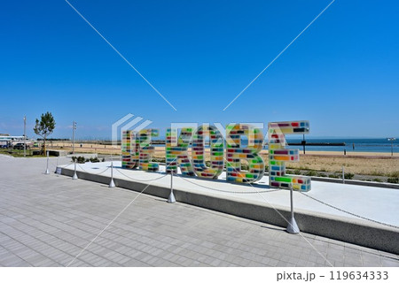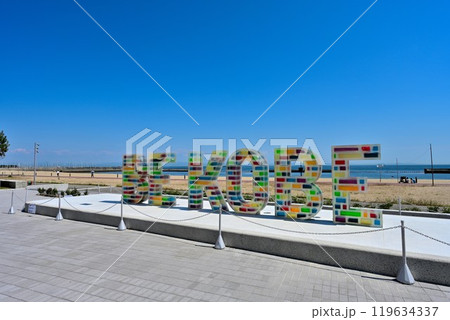 神戸市須磨海岸に設置された「BE KOBE」のモニュメント