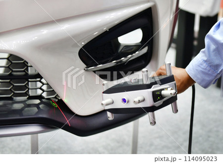 Hand-held 3D laser scanners measure the accuracy of automotive parts. in industrial plants