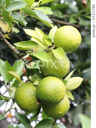 枝のまだ青いネーブルオレンジ