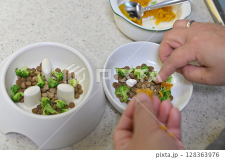 愛犬の手作りご飯 ドッグフードにトッピング(ブロッコリー・かぼちゃ・サプリ) チワワ