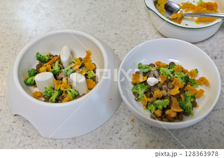 愛犬の手作りご飯 ドッグフードにトッピング(ブロッコリー・かぼちゃ・サプリ)
