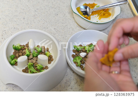 愛犬の手作りご飯 ドッグフードにトッピング(ブロッコリー・かぼちゃ・サプリ) チワワ