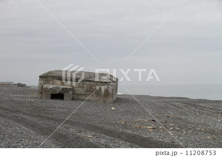 北海道、大樹町、旭浜のトーチカ群と海岸線の風景