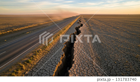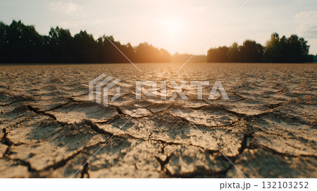 干魃、水不足のイメージ(ひび割れた田んぼ)