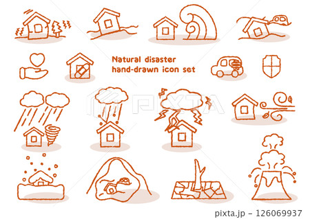 天災・自然災害のベクターアイコンイラストセット カラー 手書き風