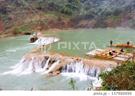 九龍の滝 瀑布群の渡し船 中国 雲南省 アジア