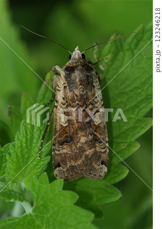 Closeup on a Large yellow underwing owlet moth, Noctua pronuba